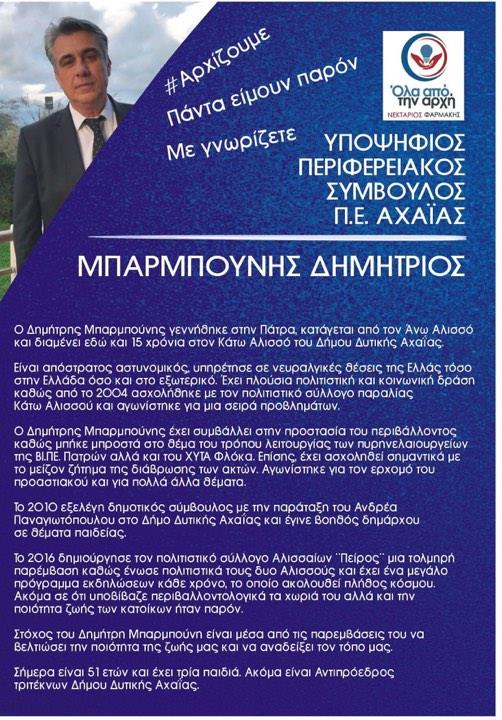 ΠολιτικήΠοιος είναι ο Δημήτρης Μπαρμπούνης – Σύντομο βιογραφικό by 4press25 Απριλίου 201925 Απριλίου 2019 Share1