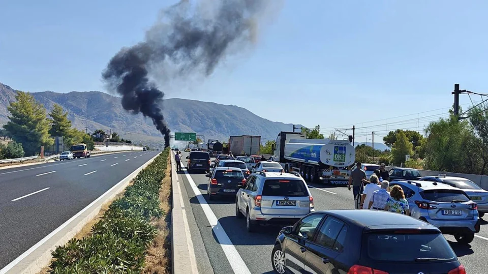 #Πυρκαγιά σε βυτιοφόρο όχημα, στο 56ο χλμ. Αθηνών – Κορίνθου, της Ολυμπίας Οδού. Επιχειρούν 12 #πυροσβέστες με 4 οχήματα.— Πυροσβεστικό Σώμα (@pyrosvestiki) August 9, 2024