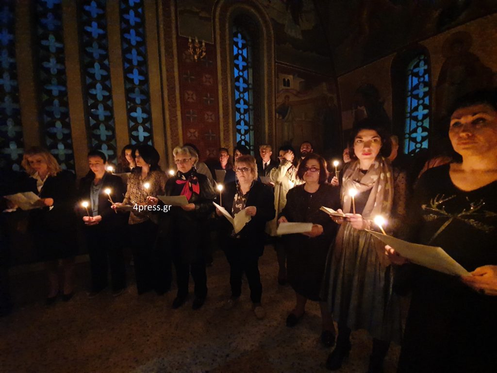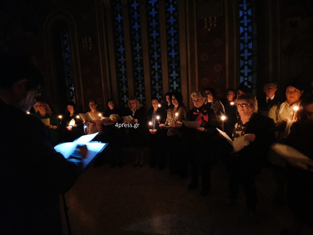 Πρόκειται για την κατανυκτική σύνθεση του Θεμιστοκλή Πολυκράτη, σε μεταφορά για μικτή χορωδία του Βολιώτη διαπρεπούς Μαέστρου, Γιάννη Καρκάλα. Ένα έθιμο που ξεκίνησε το 1984 και επί 36 χρόνια διατηρείται ανελλιπώς μέχρι σήμερα. Τη χορωδία διήυθυνε ο Καλλιτεχνικός Διευθυντής του Οργανισμού Μο Σταύρος Σολωμός.