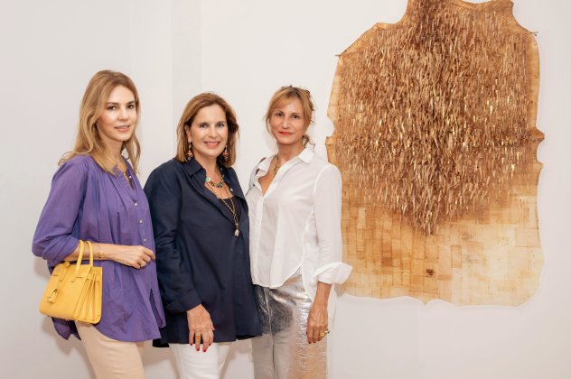 Η Κατερίνα Κατσιφαράκη παρουσιάζει ένα έργο το οποίο συντίθεται από ιστούς φραγκοσυκιάς και φύλλα χρυσού.