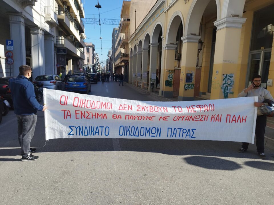 Κινητοποίηση διαμαρτυρίας του συνδικάτου Οικοδόμων με βασικά αιτήματα το φορολογικό, το ασφαλιστικό και τις τραπεζικές προμήθειες στις ψηφιακές συναλλαγές και βέβαια, άλλα παρεμφερή προβλήματα που επηρεάζουν την αγορά, όπως το υψηλό ενεργειακό κόστος και η ακρίβεια.