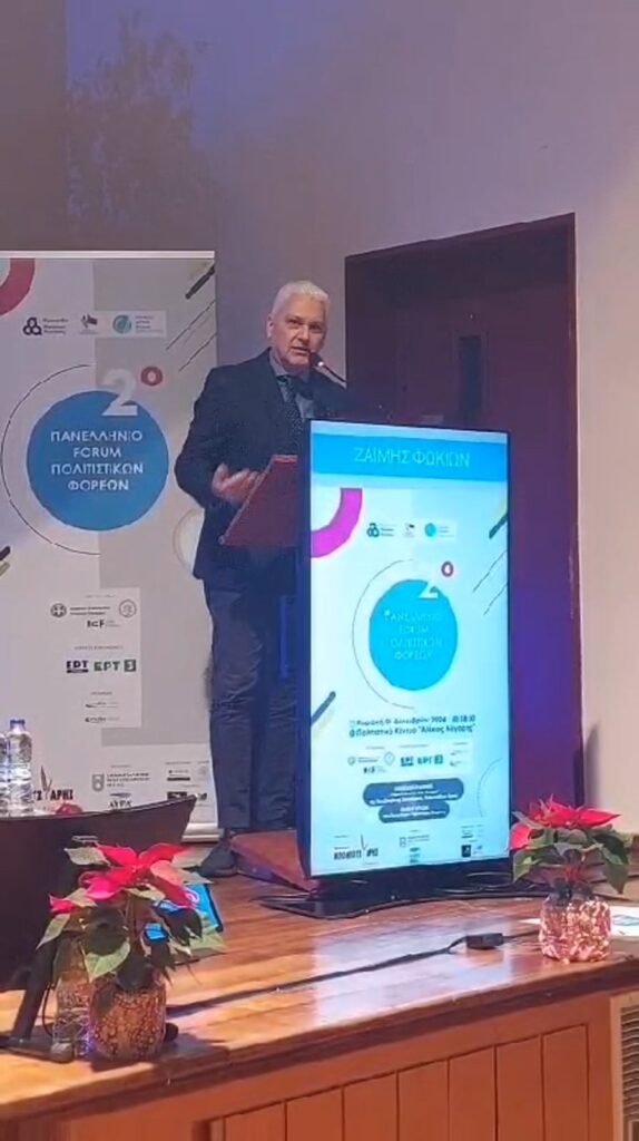 Με κεντρικό άξονα τον Πολιτισμό, την Τέχνη, το Ευ ζην και την επιχειρηματικότητα πραγματοποιήθηκε το «2ο Πανελλήνιο Forum Πολιτιστικών Φορέων» την Κυριακή 01 Δεκεμβρίου 2024, στο οποίο συμμετείχαν, ο Αντιπεριφερειάρχης Π.Ε. Αχαΐας, Φωκίων Ζαΐμης και ο Αντιπεριφερειάρχης Τουρισμού, Παναγιώτης Σακελλαρόπουλος.