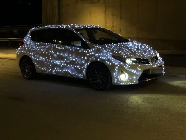 Αυτοκίνητα, έχουν μετατραπεί σε κινούμενο… υπερθέαμα με εκατοντάδες πολύχρωμα λαμπιόνια να αναβοσβήνουν.
