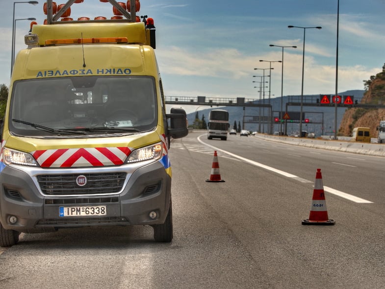 7. Σε περίπτωση βλάβης του οχήματος ή άλλης έκτακτης ανάγκης, προστατευθείτε σε ασφαλές σημείο και επικοινωνήστε με τα Κέντρα Διαχείρισης Κυκλοφορίας μέσω των SOS τηλεφώνων ή καλώντας το 1025 από το Olympia Odos app ή από το κινητό σας. Οι άνθρωποί μας είναι στο δρόμο 24/7 και θα έρθουν κοντά σας σε λίγα λεπτά.