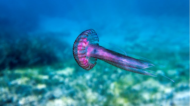 Η Pelagia noctiluca είναι εντυπωσιακό αλλά και επικίνδυνο είδος λόγω του έντονου τσιμπήματός της”.