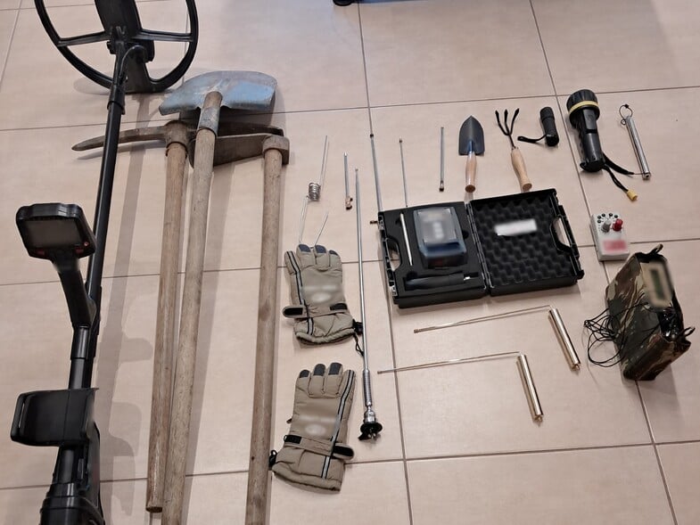 Οι συλληφθέντες εντοπίστηκαν από αστυνομικούς του Αστυνομικού Τμήματος Ερυμάνθου να πραγματοποιούν παράνομη ανασκαφή σε αγροτική περιοχή, χρησιμοποιώντας ανιχνευτές μετάλλων και ειδικά γεωργικά εργαλεία, με σκοπό τον εντοπισμό αρχαιολογικών αντικειμένων.