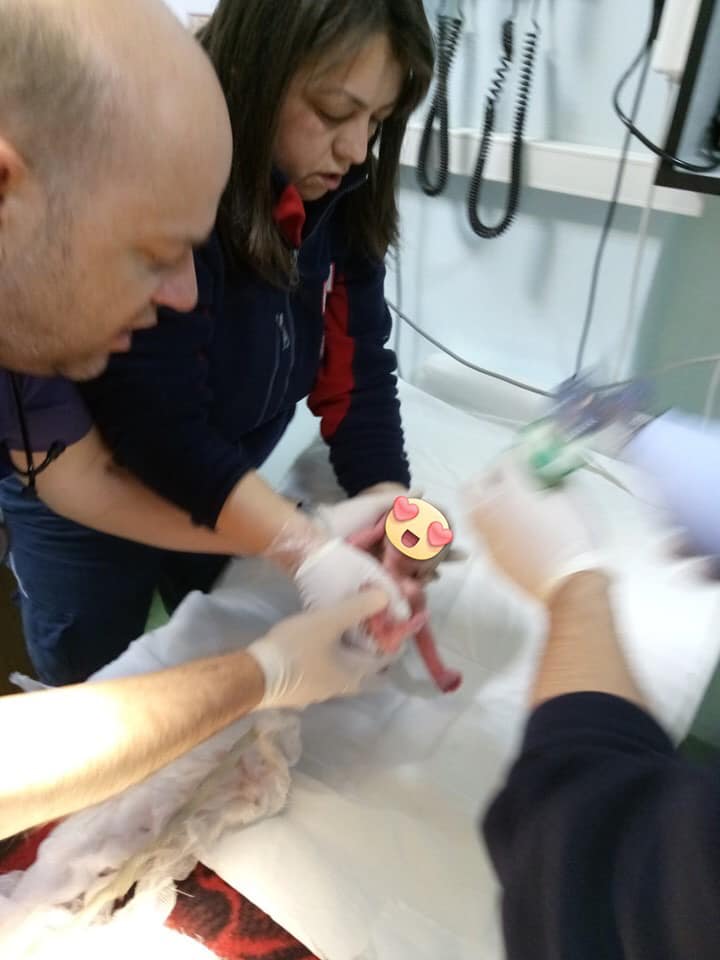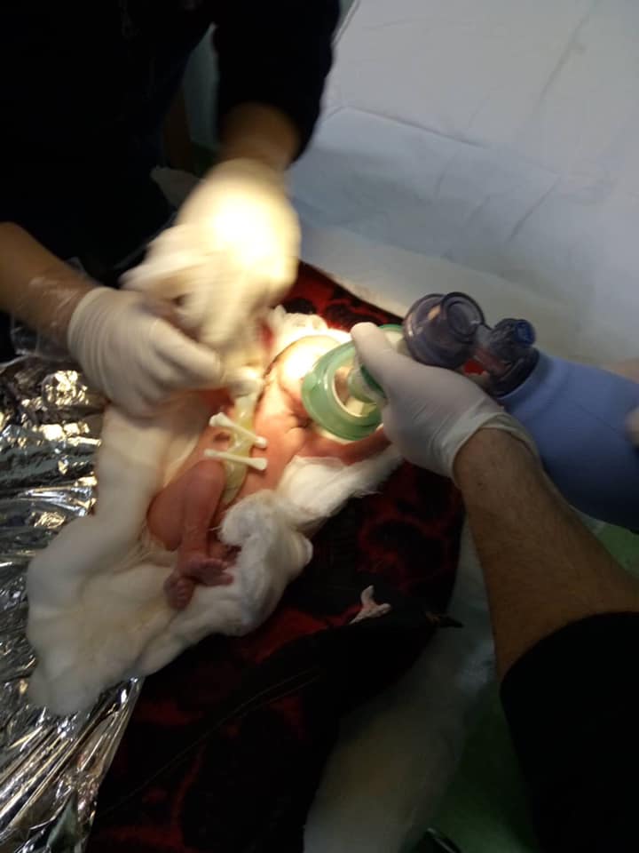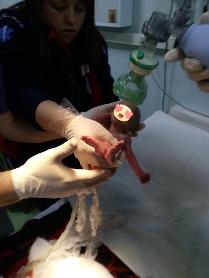 Συγκλονιστική είναι η περιγραφή των διασωστών, που δημοσίευσαν και φωτογραφίες από τη γέννα του μικρού.