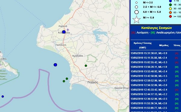Σεισμός μεγέθους 4,4 βαθμών της κλίμακας Ρίχτερ σημειώθηκε δυτικά του Πύργου Ηλείας σύμφωνα με το Ευρωμεσογειακό Σεισμολογικό Ινστιτούτο. Σύμφωνα με το Γεωδυναμικό ήταν έκτασης 3.9 Ρίχτερ.