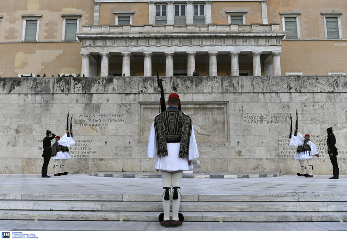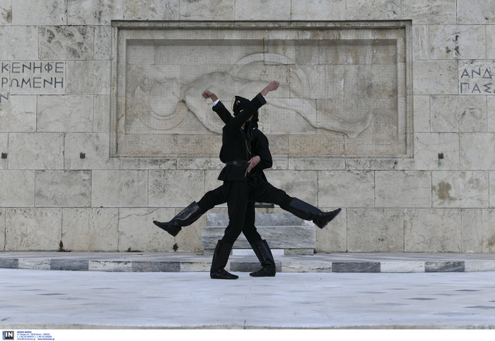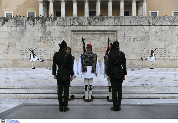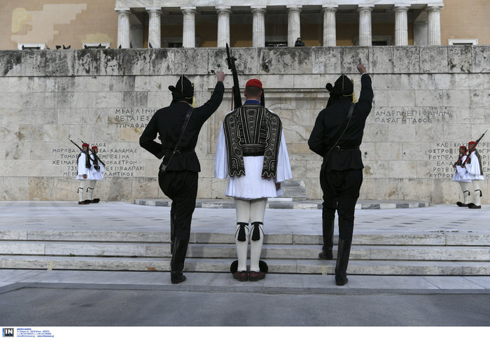 Εντονα συγκυνασιακό κλίμα στην αλλαγή φρουράς στο Μνημείο του Άγνωστου στρατιώτη στην Πλατεία Συντάγματος, όπου Πόντιοι Εύζωνες αντικατέστησαν τους τσολιάδες.