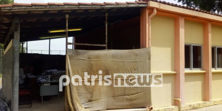 Το πρόχειρο «εκλογικό κέντρο» στήθηκε στο αίθριο του δημοτικού σχολείου και οι εικόνες μιλούν από μόνες τους.