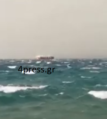 Λόγω της ξαφνικής κακοκαιρίας, φέρι μποτ που εκτελούσε τη γραμμή Ρίο Αντίρριο βρέθηκε στο ύψος του Καστελοκάμπου και “πάλευε” για ώρα σύμφωνα με με τις μαρτυρίες λουομένων να κινηθεί προς τη ρότα του, κόντρα στα κύματα