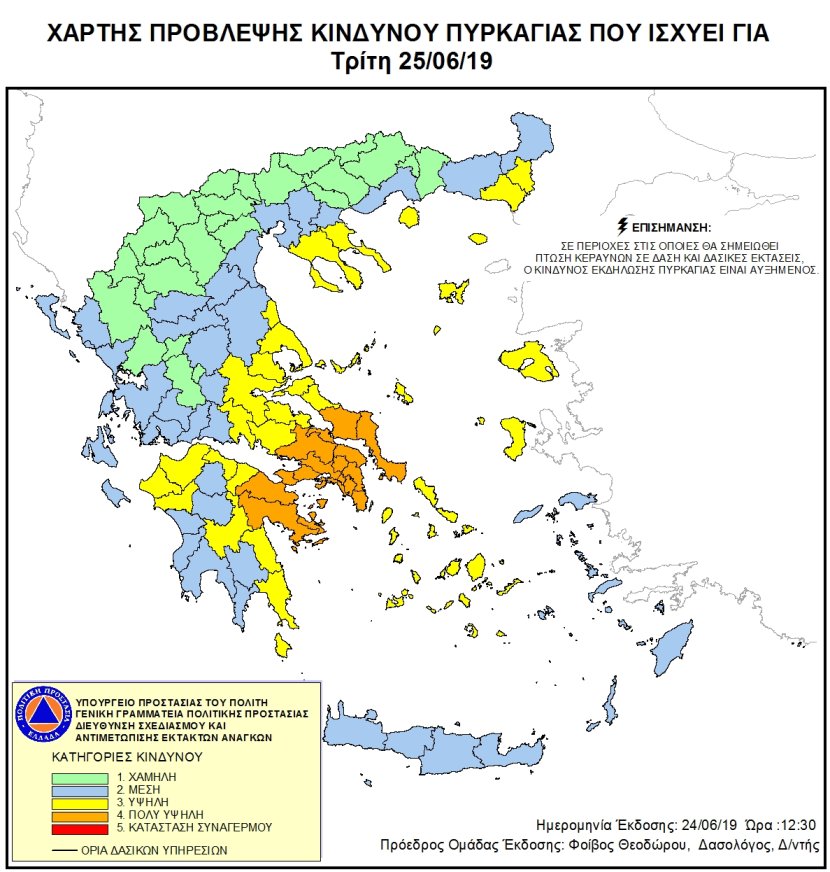 Υπενθυμίζεται ότι ο Ημερήσιος Χάρτης Πρόβλεψης Κινδύνου Πυρκαγιάς αφορά την επόμενη ημέρα από αυτή που εκπονείται και εκδίδεται.