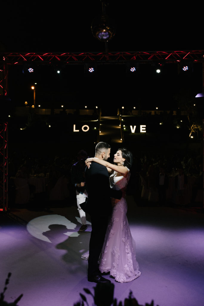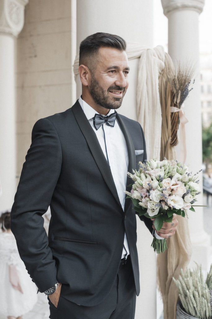 Η νύφη έλαμπε μέσα στο πανέμορφο νυφικό της, δημιουργία του οίκου νυφικών “Καραγεώργος” με το ιδιαίτερο σχέδιο και την ανοιχτή πλάτη, κλέβοντας τις εντυπώσεις.