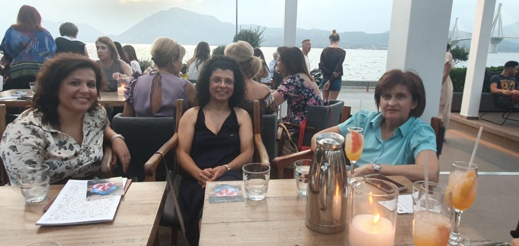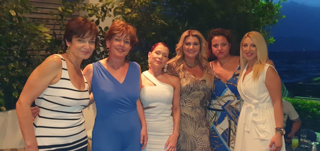 Τα βραβευμένα macarons και όχι μόνο , της Χρυσής Μουράτ Σεβαστιάδου βρέθηκαν στο επίκεντρο του χθεσινού κοκτείλ πάρτι που διοργάνωσε ο Όμιλος Inner Wheel Πατρών Βορρά – Ρίου. Ο σκοπός, ιερός αφού τα έσοδα της χθεσινής βραδιάς στήριξαν το ίδρυμα “Κιβωτός της Αγάπης”. Η πρόεδρος του Ομίλου Μαρία Ασημακοπούλου εντυπωσίασε για μία ακόμη φορά με την στυλιστική της επιλογή. Αυτη τη φορά επέλεξε ένα αέρινο φόρεμα, μαύρο με κίτρινο μοτίβο σε φλοράλ και χαμογελαστή υποδεχόταν τους λαμπερούς προσκεκλημένους της βραδιάς.