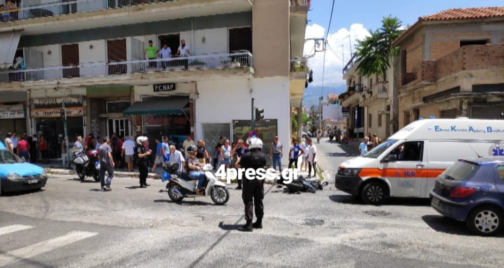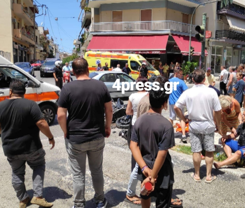 Μία γυναίκα τραυματίστηκε σήμερα το μεσημέρι όταν το μηχανάκι στο οποίο επέβαινε και οδηγούσε άνδρας συγκρούστηκε με μηχανή μεγάλου κυβισμού στην διασταύρωση των οδών Δάμωνος και Αγίας Τριάδος. Συνολικά τρία άτομα βρέθηκαν στο έδαφος. Ευτυχώς ο τραυματισμός δεν ήταν σοβαρός. Στο σημείο επικράτησε αναστάτωση. Μαζεύτηκε κόσμος. Επί τόπου έφθασε ασθενοφόρο του ΕΚΑΒ το οποίο παρέλαβε την γυναίκα και την μετέφερε στο Νοσοκομείο. Η ΤΡοχαία Πατρών διερευνά το τροχαίο για να διαπιστώσει ποιος από τους δύο οδηγούς των δικύκλων φέρει την ευθύνη.