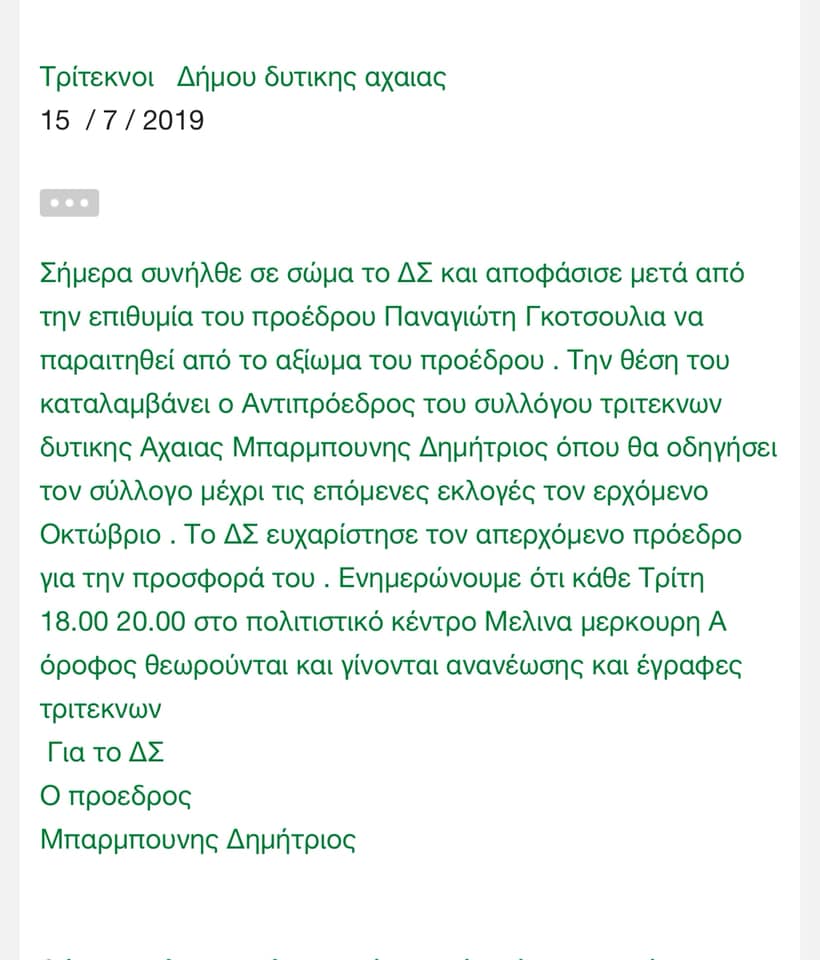 ΕιδήσειςO Δημήτρης Μπαρμπούνης ο νέος πρόεδρος των Τριτέκνων του Δήμου Δυτικής Αχαΐας by 4press16 Ιουλίου 201916 Ιουλίου 2019 Share0