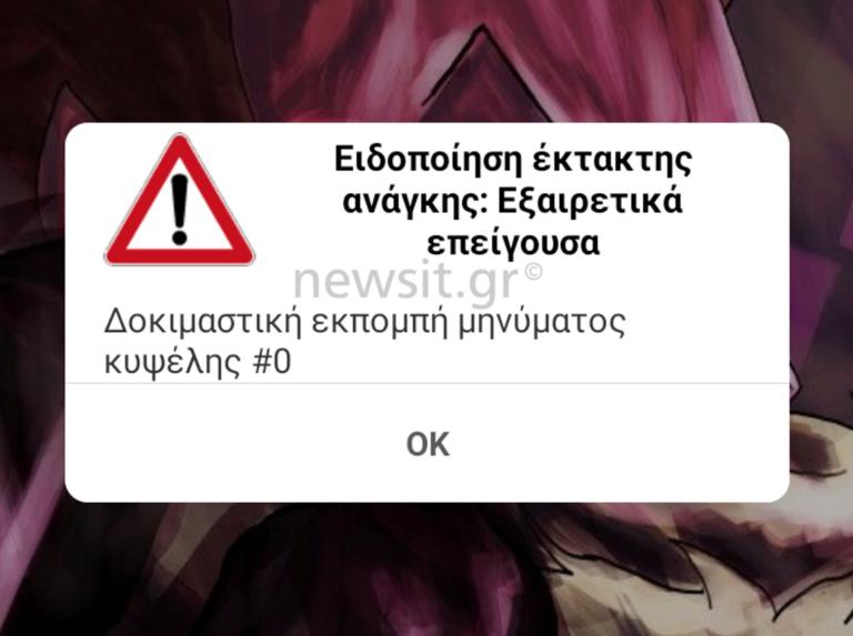 Σε ό,τι αφορά την αυριανή δοκιμή στη Σύρο, όπως ανακοινώθηκε από την ΓΓΠΠ, θα πραγματοποιηθούν στο χρονικό διάστημα από ώρα 14:00 έως 16:00,με ευθύνη του Κέντρου Επιχειρήσεων Πολιτικής Προστασίας, εκπομπές-μηνύματα της υπηρεσίας Cell Broadcast και SMS.