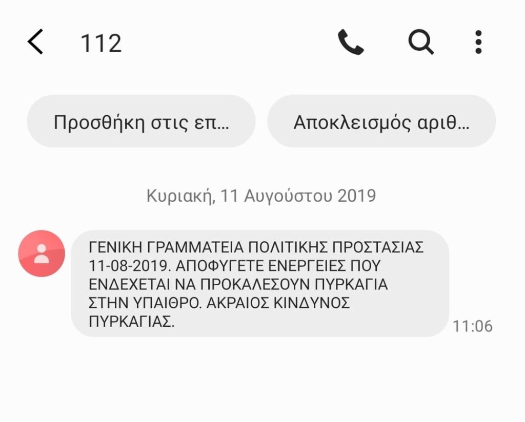 Ωστόσο, χθες που ήταν η πρώτη ημέρα αποστολής μηνυμάτων από το 112, εστάλησαν σε άλλες περιοχές τρεις και τέσσερις φορές μηνύματα που καλούσαν τους πολίτες να είναι προσεκτικοί λόγω ακραίου κινδύνου πυρκαγιάς.
