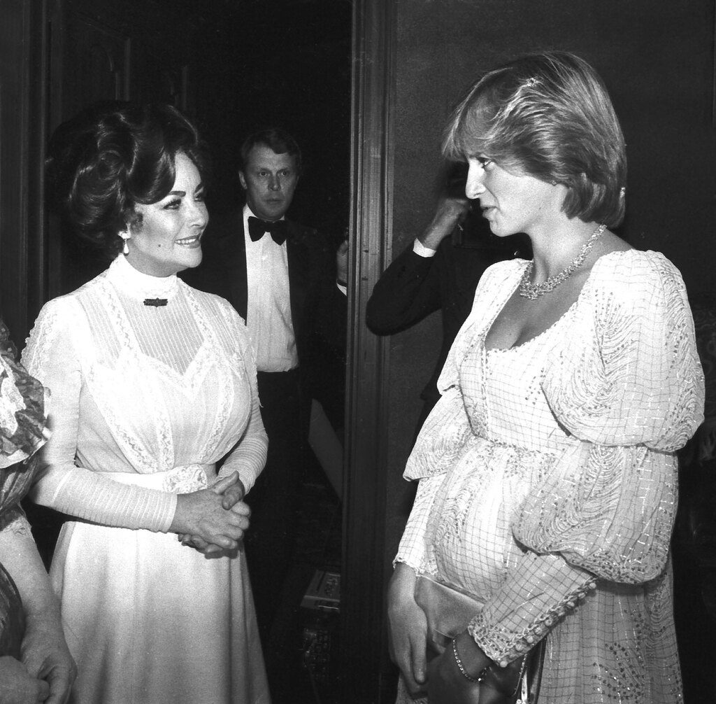 Μάρτιος 1982: η Diana περιμένει το πρώτο της παιδί μέσα στον Ιούνιο της ίδιας χρονιάς και ο φακός την εντοπίζει με την Elizabeth Taylor στην πρεμιέρα του”The Little Foxes”.