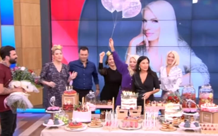 Η εκπομπή ξεκίνησε με τα φώτα κλειστά και μόλις η Ελένη Μενεγάκη μπήκε στο πλατό την περίμεναν λουλούδια, τραγούδια, πολλά γλυκά, αλλά και τούρτα για να σβήσει κεράκια.