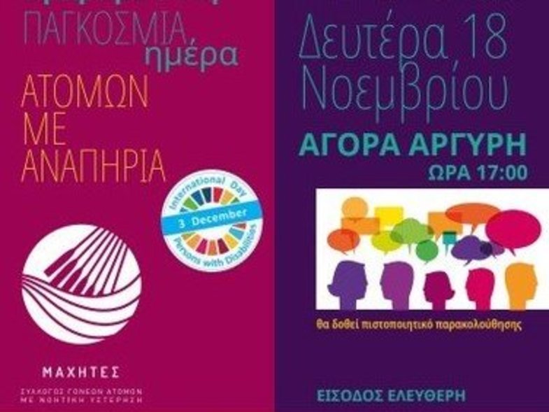 Με αφορμή λοιπόν την Παγκόσμια Ημέρα Ατόμων με Αναπηρία, οι «Μαχητές» (Σύλλογος Γονέων ατόμων με νοητική υστέρηση) διοργανώνουν ένα τριήμερο εκδηλώσεων, στις 18, 20 & 21 Νοέμβρη 2019, εστιασμένο στην ανάδειξη της μοναδικότητας και της διαφορετικότητας των νέων με νοητική υστέρηση. Σκοπός των εκδηλώσεων είναι η ενημέρωση, εξοικείωση και ευαισθητοποίηση των πολιτών, η εξάλειψη στερεότυπων αντιλήψεων και συμπεριφορών και η δημιουργία συνθηκών ισότιμης πρόσβασης στον κοινωνικοοικονομικό βίο.