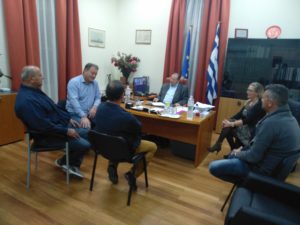Σε αυτό το πλαίσιο, την Δευτέρα 18-11-2019, πραγματοποιήθηκε στο γραφείο του Δημάρχου, συνάντηση με φορείς του τόπου μας και συγκεκριμένα με τον Εμπορικό Σύλλογο Αιγίου, τον Σύλλογο Μηχανικών Τεχνολογικής Εκπαίδευσης Δημοσίων Υπαλλήλων, το Δ.Σ του ΚΑΠΗ και το Τοπικό Συμβούλιο Ελαιώνα. Όλες οι συναντήσεις έγιναν στο πλαίσιο της διαρκούς διαβούλευσης με την τοπική κοινωνία με σκοπό τη διαμόρφωση πλαισίου συνεργασίας που θα οδηγήσει στην αντιμετώπιση των προβλημάτων.