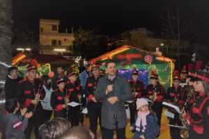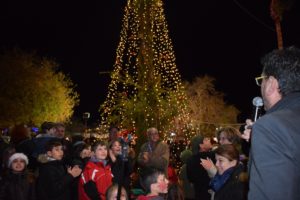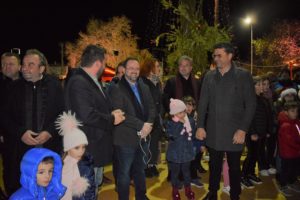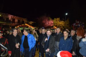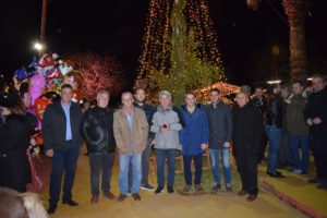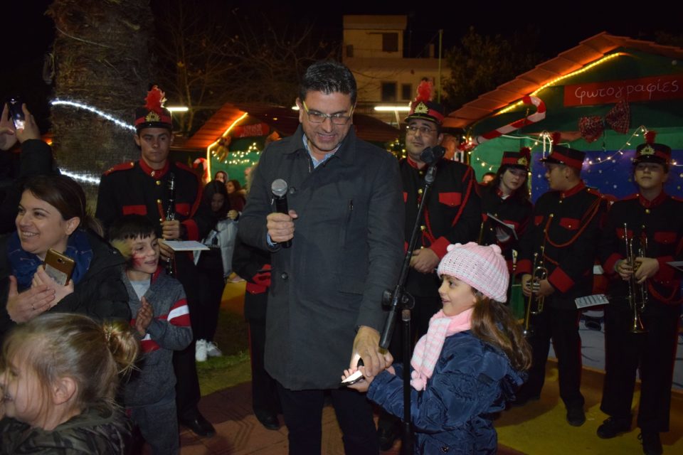 Ο Δήμαρχος αφού ευχαρίστησε τη περιφέρεια, τους συλλόγους,τους προέδρους και όλους όσους εργάστηκαν για τις εορταστικές εκδηλώσεις, ξεκίνησε την αντίστροφη μέτρηση δίνοντας στη κόρη του την Αθηνά το κοντρόλ ώστε να ανάψουν μαζί το Χριστουγεννιάτικο δέντρο. Με τη φωταγώγηση του δέντρου ο ουρανός έλαμψε από το φως τον πυροτεχνημάτων συνοδευόμενος υπο τις Χριστουγεννιάτικες μελωδίες της Φιλαρμονικής και τα αστραφτερά χαμόγελα του κόσμου. Ο Δήμαρχος στη δήλωση του τόνισε μεταξύ άλλων, “Απόψε φωταγωγούμε το Χριστουγεννιάτικο δέντρο μας, το σύμβολο της ελπίδα, της αισιοδοξία, της αγάπης και της ειρήνης στην καρδιά μας και στον τόπο μας”.