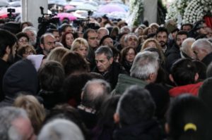 Το τελευταίο αντίο στον Θάνο Μικρούτσικο είπαν συγγενείς, πολυαγαπημένοι φίλοι και πλήθος απλών πολιτών στο Α’ Νεκροταφείο Αθηνών.