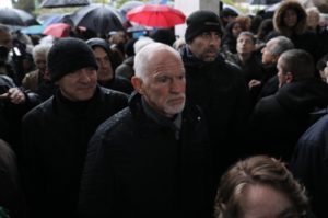 Μεταξύ των επωνύμων που έχουν φθάσει στο Α’ Νεκροταφείο Αθηνών για να αποχαιρετήσουν τον Θάνο Μικρούτσικο είναι ο Γιώργος Κιμούλης, που θα εκφωνήσει και επικήδειο, η Λιάνα Κανέλη, η Σοφία Βόσσου, ο Γιάνης Βαρουφάκης με την σύζυγό του Δανάη Στράτου, ο Κώστας Γεωργουσόπουλος και πολλοί ακόμη.
