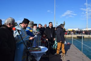 Τη Δευτέρα 6 Ιανουαρίου 2020, μετά την τέλεση της Θείας Λειτουργίας στον Ιερό Ναό Αγίου Διονυσίου χοροστατούντος του Επισκόπου Ωλένης Θεοφιλεστάτου κ. Αθανασίου, πραγματοποιήθηκε ο Αγιασμός των υδάτων και η ρίψη του Τιμίου Σταυρού, στο Λιμάνι της Κυλλήνης.