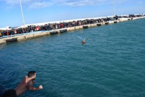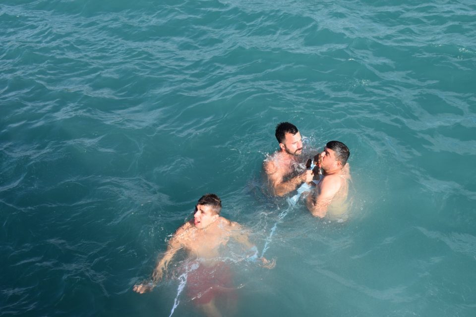 Από νωρίς πλήθος πιστών συγκεντρώθηκε στο χώρο του Λιμανιού, όπου παρακολούθησε με κατάνυξη την Τελετή Κατάδυσης του Τιμίου Σταυρού στη θάλασσα.