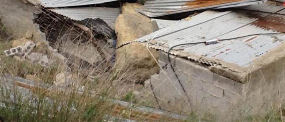 Βράχος αποκολλήθηκε και έπεσε σε υπόστεγο σπιτιού στα Πιτσίδια του Ηρακλείου Κρήτης.