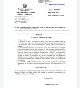 Στο πλαίσιο πρόληψης κατά της διασποράς του κορωνοϊού, με απόφαση του Δημάρχου Ανδραβιδας-Κυλλήνης κ. Λέντζα Γ. αναστέλλεται η λειτουργία της Κυριακάτικης Αγοράς Νέας Μανωλάδας την Κυριακή 15