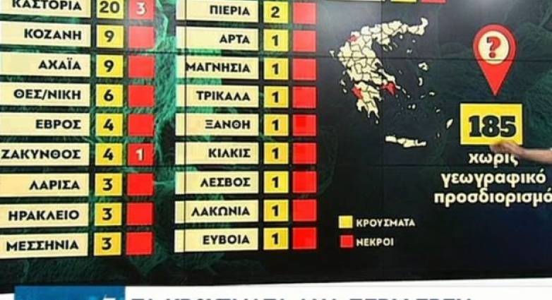 Τον χάρτη του κορωνοϊού στην Ελλάδα παρουσίασε η ΕΡΤ στο κεντρικό της δελτίο ειδήσεων.