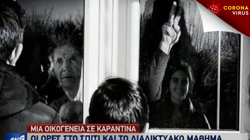 Σύμφωνα με το ρεπορτάζ του καναλιού, στη φωτογραφία εμφανίζονται παιδιά στη Δαμασκηνιά Κοζάνης, όπου παραμένει ολόκληρη σε καραντίνα λόγω κορονοϊού, να χαιρετούν τους παππούδες τους.