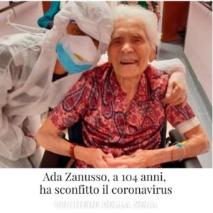 Θεραπεία 104 χρόνια από τον κορονοϊού. Η Ada Zanusso το έκανε. Μετά τους δύο παγκόσμιους πολέμους, ξεπέρασε και τον ιό που βάζει ολόκληρη τη χώρα σε σοβαρή κρίση με το να γίνει ο αρχαιότερος επιζών στον κόσμο. Η Άντα ζει, “από επιλογή της” υπογραμμίζει ο γιος της, στην κατοικία Μαρία Γκράτσια που διαχειρίζεται το Ίδρυμα Cerino Zegna στη Λεσόνα, στην επαρχία της Μπιέλα. Ένα από αυτά που έχουν πληγεί από είκοσι έναν θανάτους τις τελευταίες εβδομάδες, κυρίως προκλήθηκαν από πνευμονία εκ των οποίων εννέα σίγουρα θετικοί. Και όπου πολλοί επισκέπτες είναι ακόμα μολυσμένοι τώρα. “Θαύμα θεραπεύτηκε” λέει ο γιος της Giampietro Brisotto. ” Είναι μια δυνατή και ισχυρή γυναίκα. Για να βοηθήσει οπωσδήποτε την πίστη της και τη συνήθεια της να είναι πάντα στον ανοιχτό αέρα, ακόμα και μόνο για να κάνει τον κήπο του σπιτιού “. Το άρθρο, της Floriana Rullo, είναι στην ιστοσελίδα του @corriere ❤️️