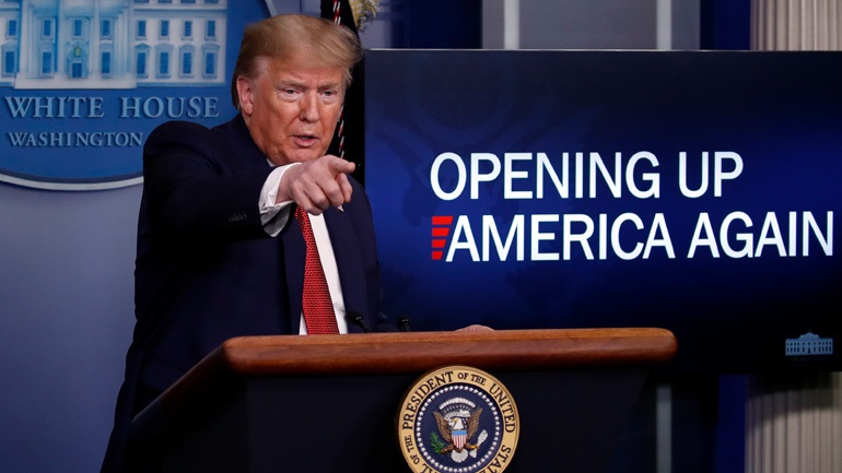 Το σχέδιο για την επανεκκίνηση της αμερικανικής οικονομίας ανακοίνωσε την Πέμπτη και επισήμως ο Αμερικανός πρόεδρος Ντόναλντ Τραμπ λέγοντας πως αυτό ξεκινά την 1η Μαΐου.