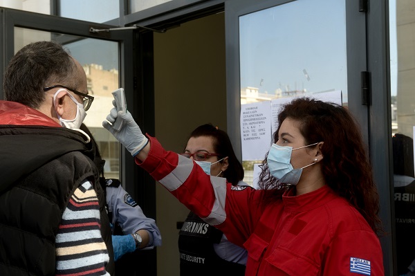 Όπως βλέπουμε από τις φωτογραφίες αυτές από το Ειρηνοδικείο και το Πρωτοδικείο Αθηνών, από σήμερα γίνεται θερμομέτρηση σε όλους από τον Ερυθρό Σταυρό.