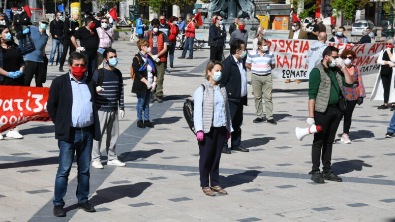 Με αποστάσεις, γάντια και μάσκες η συγκέντρωση για την Εργατική Πρωτομαγιά