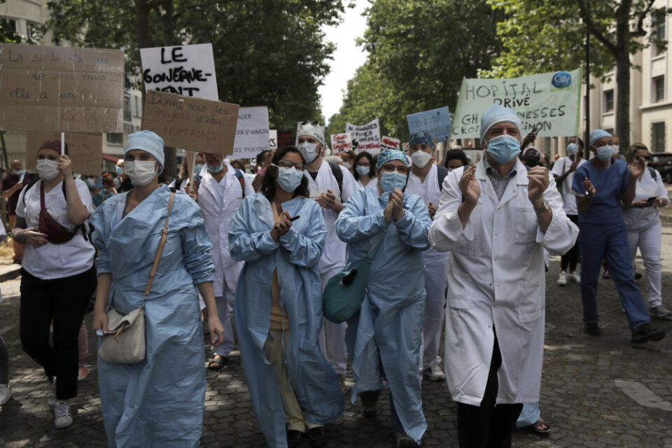 Οι εργαζόμενοι στο χώρο της Υγείας διεκδικούν αναβάθμιση του συνόλου του εθνικού συστήματος υγείας, ενώ παράλληλα θέλουν να υπενθυμίσουν στην κυβέρνηση Μακρόν – που βρίσκεται αντιμέτωπη με έντονη κριτική το τελευταίο διάστημα – τις υποσχέσεις που τους είχε δώσει όταν η κρίση του κορωνοϊού βρισκόταν στην κορύφωσή της.
