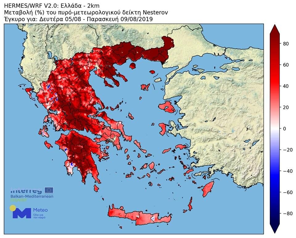 Θερμοκρασία: Από 21 έως 37 και κατα τόπους 38 βαθμούς Κελσίου. Στη δυτική Μακεδονία η ελάχιστη 3 με 4 βαθμούς χαμηλότερη.