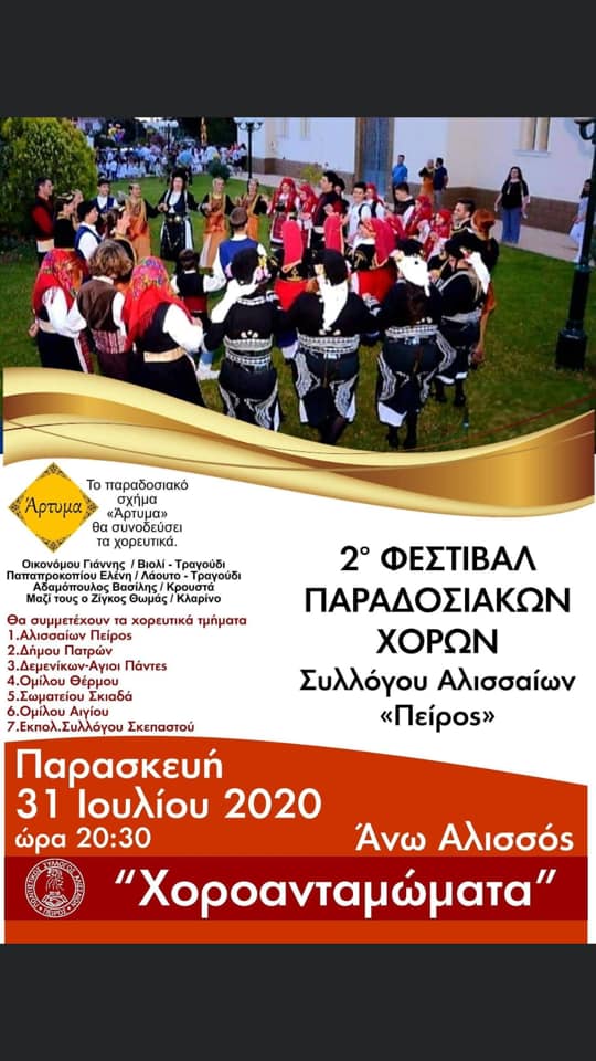 Τρεις ξεχωριστές πολιτιστικές εκδηλώσεις έχει προγραμματίσει ο Πολιτιστικός Σύλλογος Αλισσαίων “Πείρος” για τον Ιούλιο.