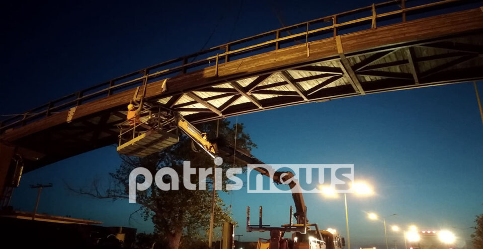 Ολονύχτιες εργασίες για την αποξήλωση της επικίνδυνης πεζογέφυρας στην Ε.Ο Πύργου – Πατρών, στο ύψος των Σχολών του ΟΑΕΔ, πραγματοποιήθηκαν υπό την επίβλεψη του Αντιπεριφερειάρχη Ηλείας Βασίλη Γιαννόπουλου που το περασμένο διάστημα κατέβαλε συνεχείς προσπάθειες προκειμένου να γνωστοποιήσει προς τους αρμόδιους φορείς την επικινδυνότητα της συγκεκριμένης γέφυρας για τους πολίτες.