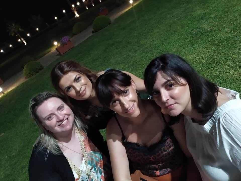 Συνεργάτες και καλές φίλες της Κωνσταντίνας Μπούσια, ευχήθηκαν στο ζευγάρι. Στη φωτογραφία, οι δημοσιογράφοι Βίκυ Δρακούλη και Φανή Χασάνδρα και η Κατερίνα Βλάχου.