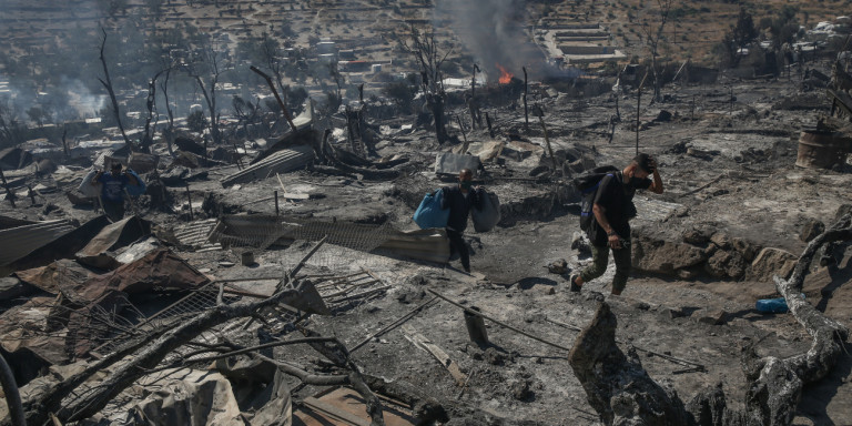 Εικόνες: Ολοκληρωτική η καταστροφή στη Μόρια