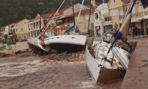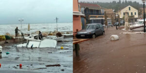 Δεκάδες βάρκες και ιστιοφόρα έχουν βυθιστεί, ενώ πολλά καταστήματα έχουν υποστεί σοβαρές ζημιές. Αγκυροβολημένο ιστιοφόρο σκάφος, σημαίας Ελβετίας, παρασύρθηκε λόγω των ισχυρών ανέμων και προσέκρουσε σε βραχώδη ακτή στη θαλάσσια περιοχή Σχίνου, ανατολικά της Ιθάκης.