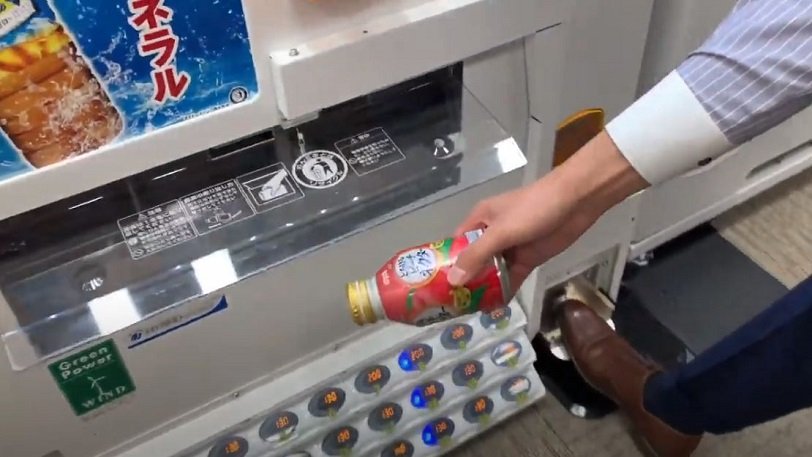 Η εταιρεία ”Dydo”, με έδρα την Οσάκα, σχεδίασε αυτό το μηχάνημα αυτόματης πώλησης αναψυκτικών και τροφίμων. Ο κόσμος επιλέγει απλά με το πόδι του τι θέλει και αυτό… πέφτει! Μάλιστα, η θήκη όπου πέφτουν τα προϊόντα διαθέτει ακτίνες UV, που φροντίζουν για την απολύμανση από τους παθογόνους μικροοργανισμούς και τους ιούς…