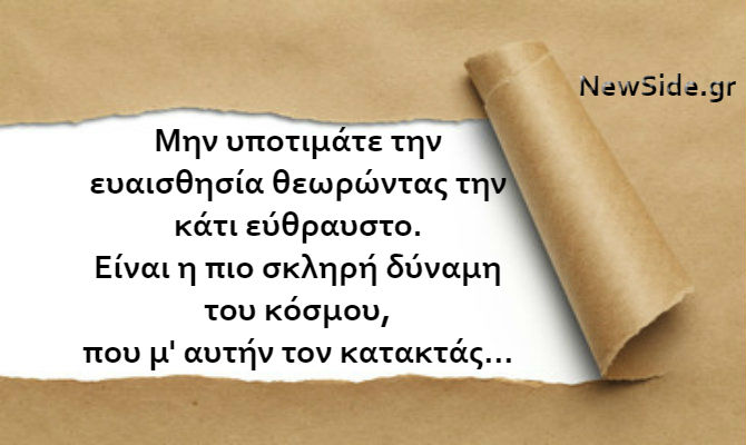 Είστε ανθρώπινα όντα με μεγάλη και ευαίσθητη καρδιά και νιώθετε πράγματα. Μην ντρέπεστε γι αυτό. Δεν βρίσκεστε εδώ για να κρύβετε τα συναισθήματα σας και να προσποιείστε πως είστε ένα ψυχρό ρομπότ που δεν νιώθει τίποτα. Δημιουργηθήκατε για να νιώθετε και να αγαπάτε. Αυτό είναι το πιο σημαντικό χαρακτηριστικό που σας κάνει να διαφέρετε από τους υπόλοιπους.