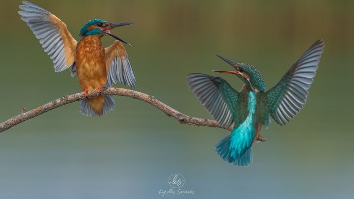 Το καβγαδάκι ανάμεσα σε ένα ζευγάρι αλκυόνες που «αιχμαλώτισε» με τον φωτογραφικό του φακό ο Κύριλλος Σαμαράς, του απέφερε την πρώτη θέση στον πανελλήνιο διαγωνισμό φωτογραφίας «Wild Seasons Photo Competition».