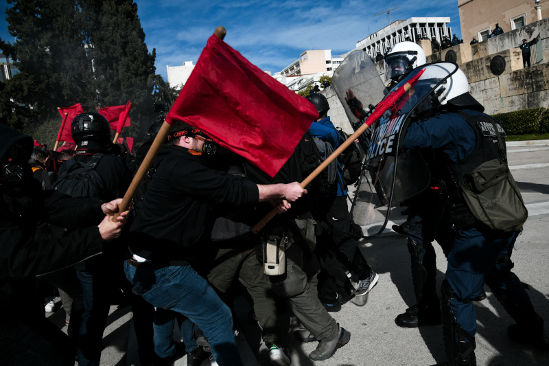 Ομάδα νεαρών που συμμετείχαν στην πορεία συνεπλάκησαν με τις αστυνομικές δυνάμεις έξω από τη Βουλή. Οι άνδρες των ΜΑΤ έκαναν περιορισμένη χρήση χημικών και προχώρησαν σε προσαγωγές.